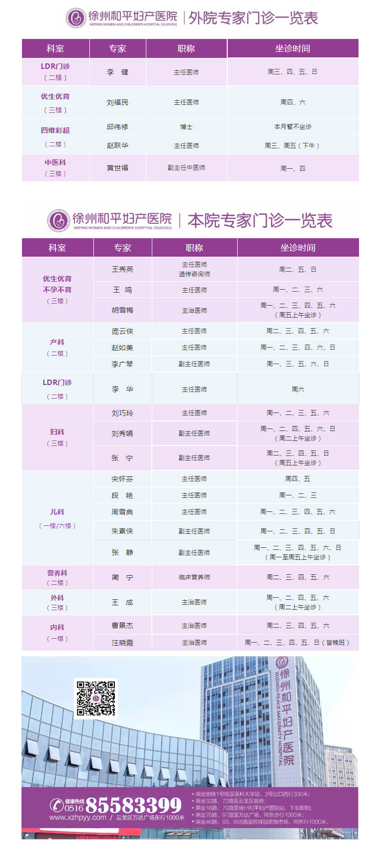 徐州和平妇产医院2020年5月4日—5月10日专家坐诊时间表,有需要的亲,赶紧预约哦~~