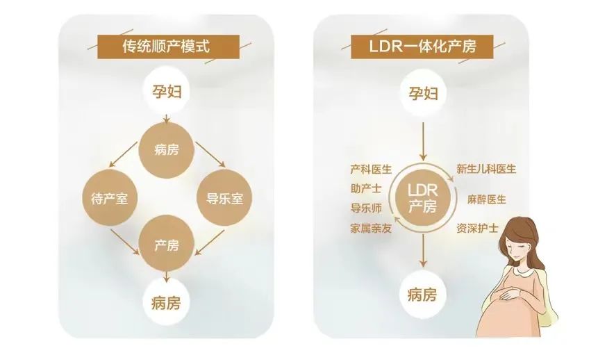 LDR以产妇为中心,由妇产科医生、新生儿科医生、麻醉医生、资深助产士、专业导乐师等组成多对一专属医疗团队,并配备麻醉机、彩超机等专业医疗设备,全程为母婴安全保驾护航。