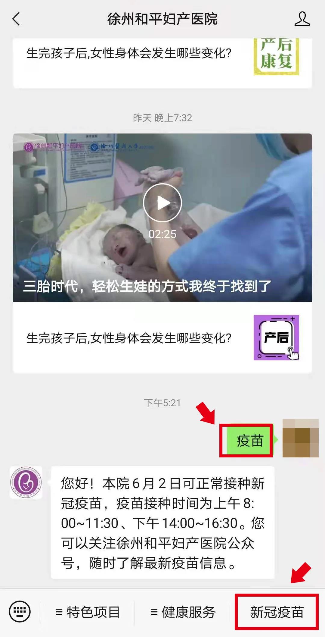 点击右下角【新冠疫苗】,或微信对话框回复关键字【疫苗】,查询当日疫苗信息、接种指南、常见问题等。
