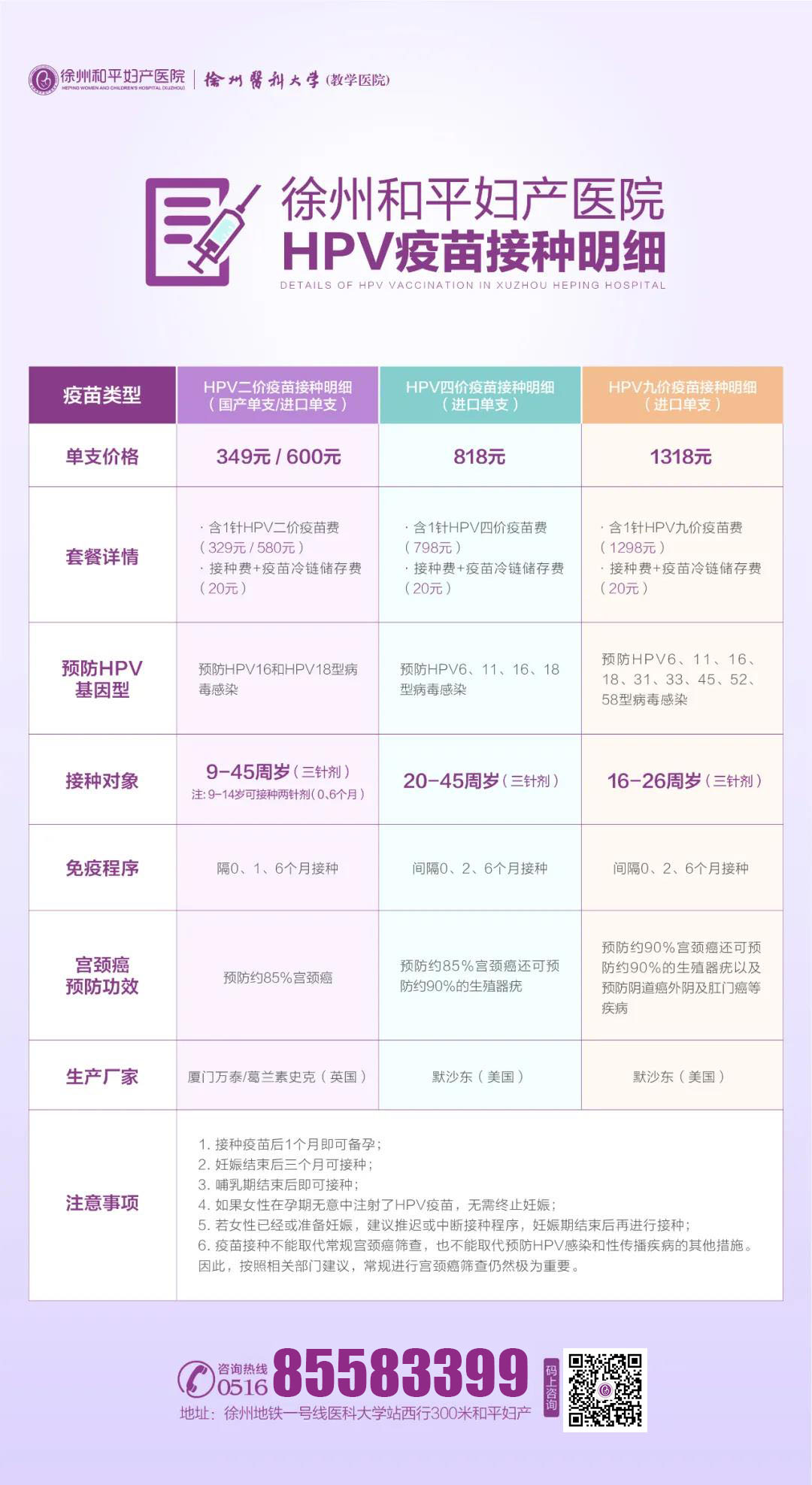 徐州和平妇产医院HPV疫苗近期已陆续到货,这两日已经有部分患者打上了HPV疫苗图片。关于疫苗接种明细,大家可以点击下图了解: