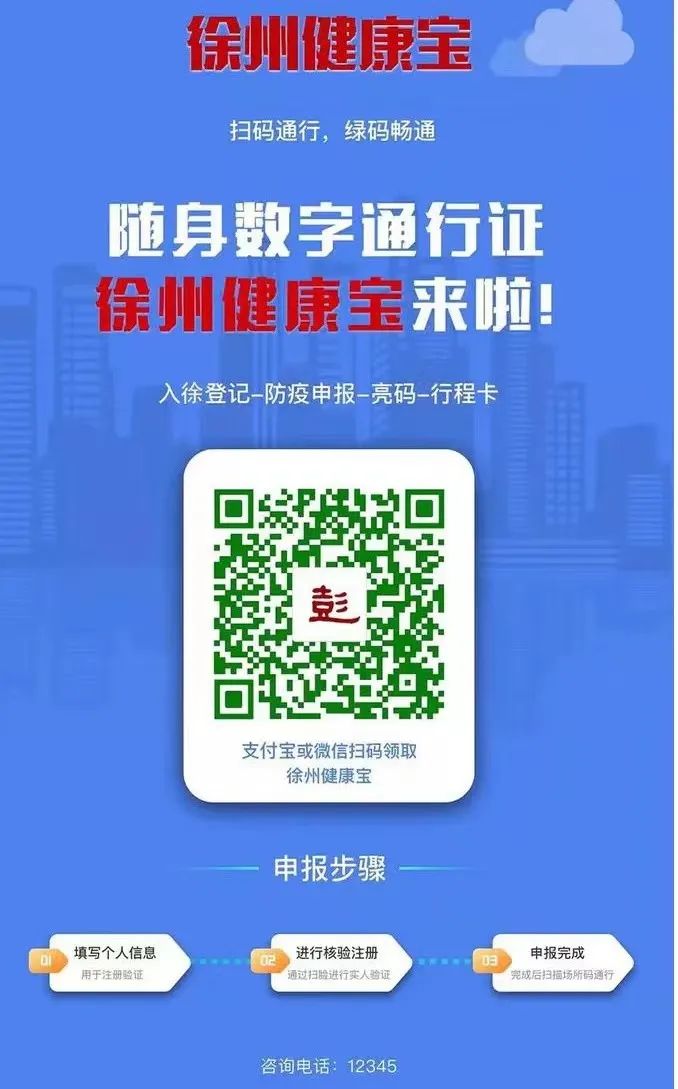 根据徐州市疫情防控指挥部要求,为应对当前严峻复杂的疫情形势,我市将全面推广使用徐州健康宝及“场所码”。
