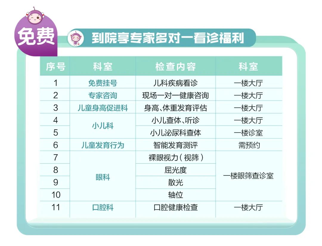 义诊当天(仅限7月9日),免儿科挂号费,机不可失,有需求的家长们快来参加!