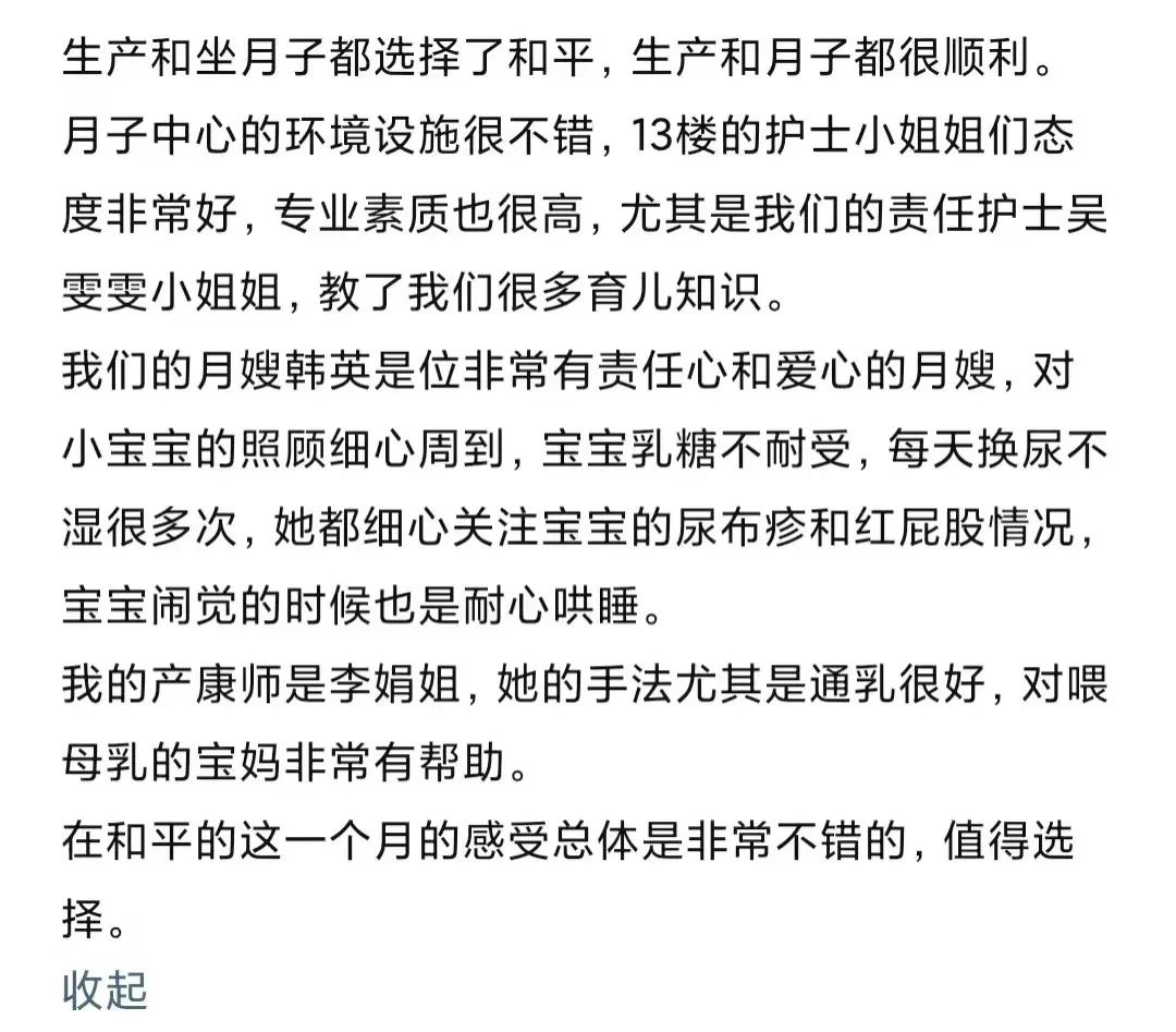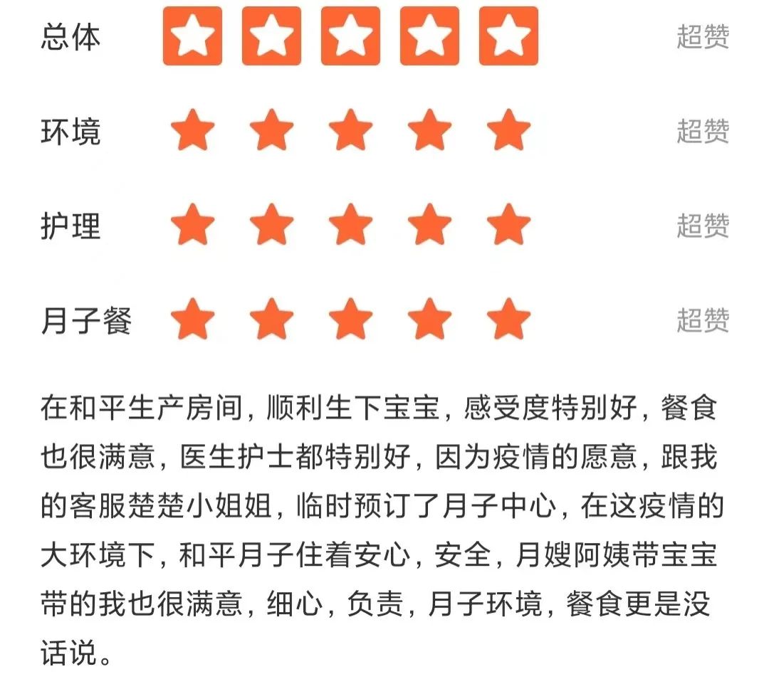 ↓无数和平妈妈也留下了她们对和平医疗级月子公寓的满满好评↓