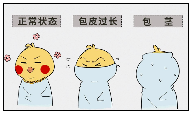 包茎:若包皮将龟头完全覆盖,包皮口狭窄,不能外翻露出龟头,则为“包茎”。