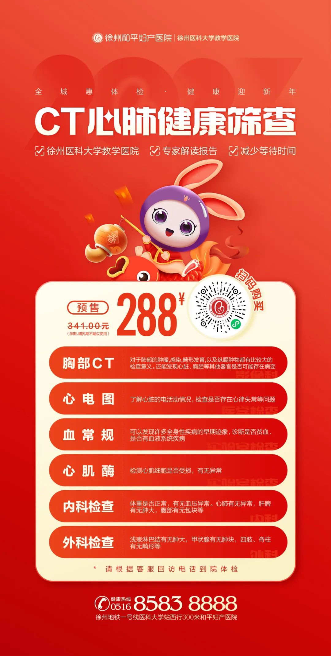 同时,为方便大家“阳康”后对心肺功能的及时筛查,徐州和平妇产医院体检中心特推出“CT心肺健康筛查体检套餐”,为您的健康保驾护航!