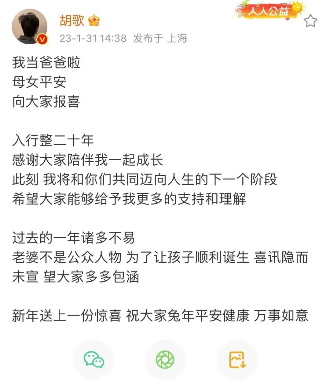 胡歌官宣当爸炸网,不过这几点,他也未必知道