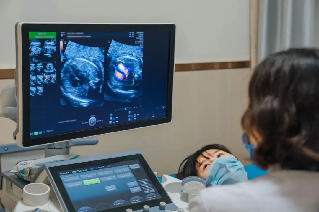 △和平妇产医院超声科医生正在为孕妈进行产前筛查
