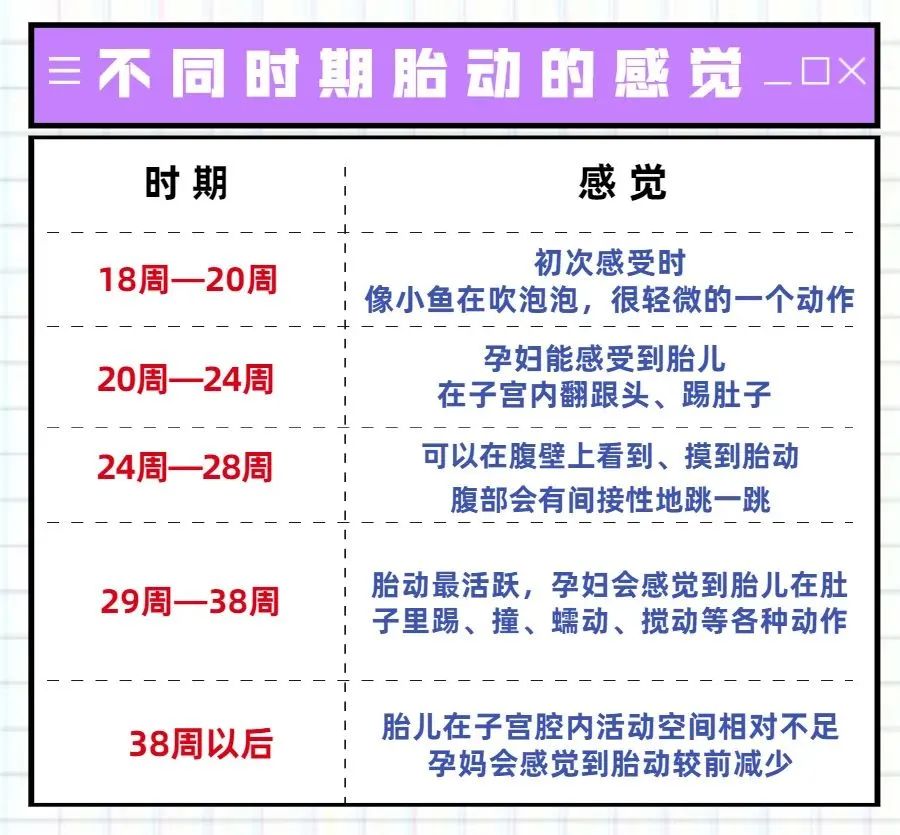 胎动是孕妇自我监测胎儿宫内安危的重要指标。胎动可分为转动、翻动、滚动、跳动,初始胎动一般发生在孕18—20周左右。